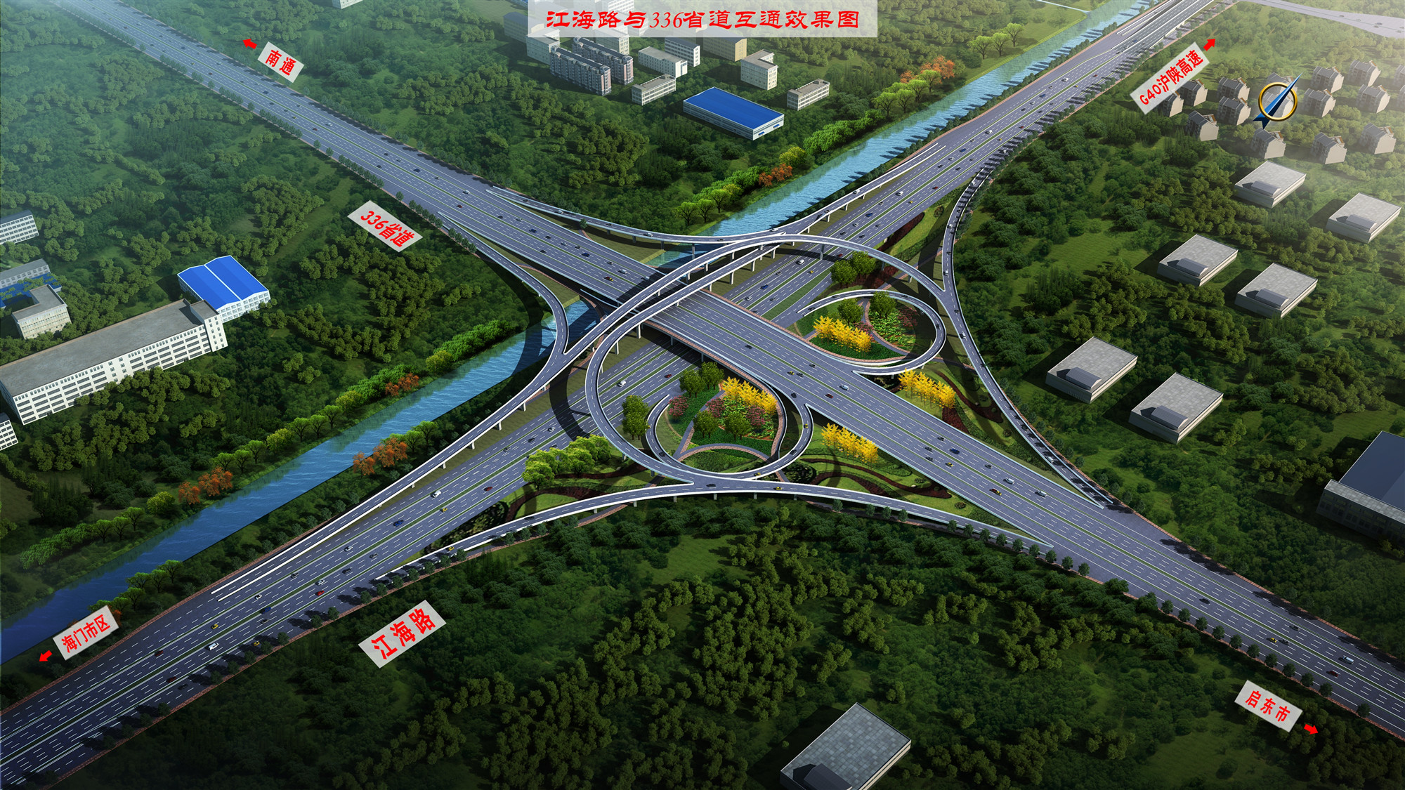“一路飞架南北”——江海路快速化改造工程,总投资约33亿元,是海门历史上体量最大、技术要求最高的城市交通基础设施建设项目。工程北起 G40 沪陕高速,南至上海路,全长约 8800 米,由北段、中段、南段三个部分组成。北段工程自G40 出口到丝绸路,包括江海路与 G228 蝶形全互通立交桥、主线高架桥、地面道路及配套工程等,主线长 2710 米;中段工程自丝绸路到秀山路,为隧道工程段,隧道长 1535 米;南段工程自秀山路到上海路,主要由高架桥梁和地面辅道组成。由南通三建产品事业部市政公司和海外事业部负责施工,按照“思想统一、形象统一、目标统一”的原则,协同推进、协同指挥,目前,北段工程施工现场一派热火朝天,承台完成全部工作量的70%,桥墩完成50%,预计到明年9月全部工程竣工;南段及中段9月全面开工,并按总计划推进实施。