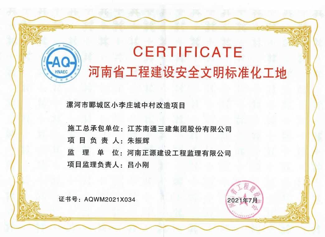 “工程建设安全文明标准化工地”是河南省工程建设协会评选的工程建设安全文明标准化建设方面荣誉奖项,代表着获奖工程现场标准化、精细化、信息化建设程度高、扬尘治理符合河南省相关要求,并得到了河南省建设相关部门、专家的高度肯定。