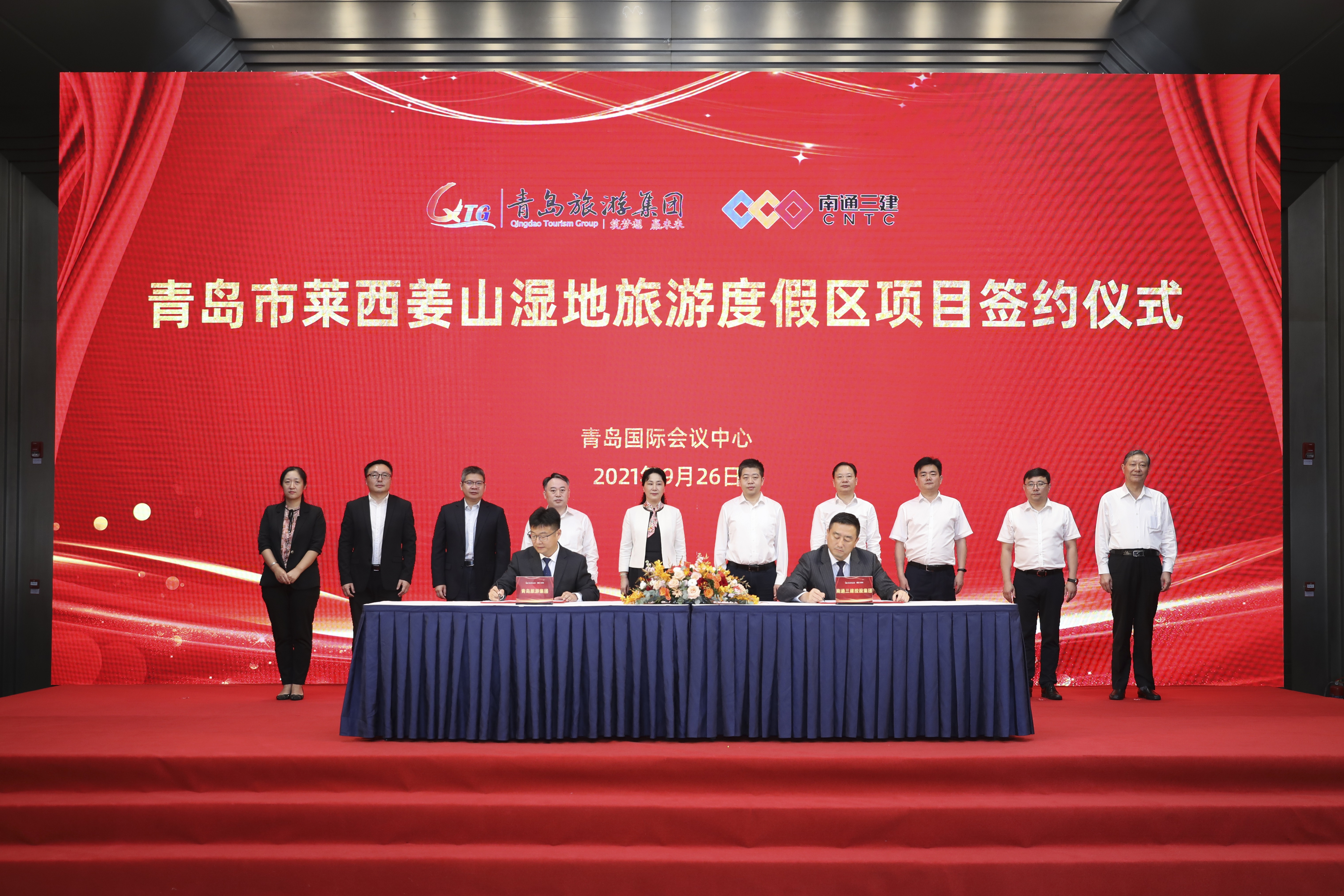 9月26日上午,南通三建控股集团与青岛旅游集团关于青岛莱西姜山湿地项目的战略合作签约仪式在青岛国际会议中心隆重举行。南通市海门区委副书记、区长沈旭东,青岛市文化和旅游局副局长蔡全记、国资委副主任朱江,青岛莱西市副市长赵晓光,青岛旅游集团董事长王红,青岛莱西市文旅局党委书记徐云、姜山镇镇长赵帅,海门区政府办公室主任冯斌、司法局局长高志雄,南通三建控股集团董事长黄裕辉、高级顾问梁辉等出席了本次活动。