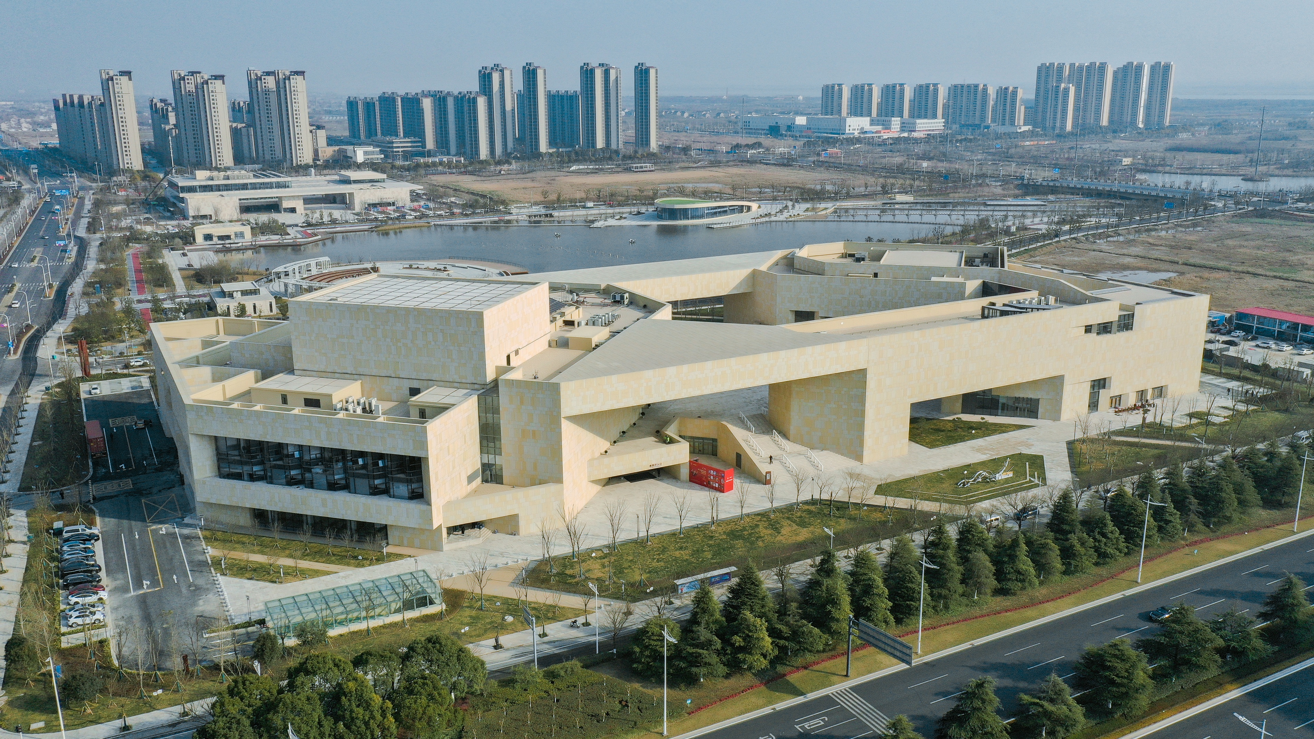 海门文化中心大剧院是海门区委区政府为满足全市人民文化生活需求和经济社会高质量发展而重点建设的标志性文化工程,承载着广大江海儿女对美好文化生活的新期待、新梦想。该项目位于海门高新区东布洲路南、张謇大道东、府南绿廊西侧,与江海博物馆、海门图书馆呈“品”字布局,遥相呼应。大剧院项目总建筑面积47728.77平方米,由海门大剧院、东布洲百姓剧场及海门山歌艺术剧院组成,工程造价约4.27亿元。