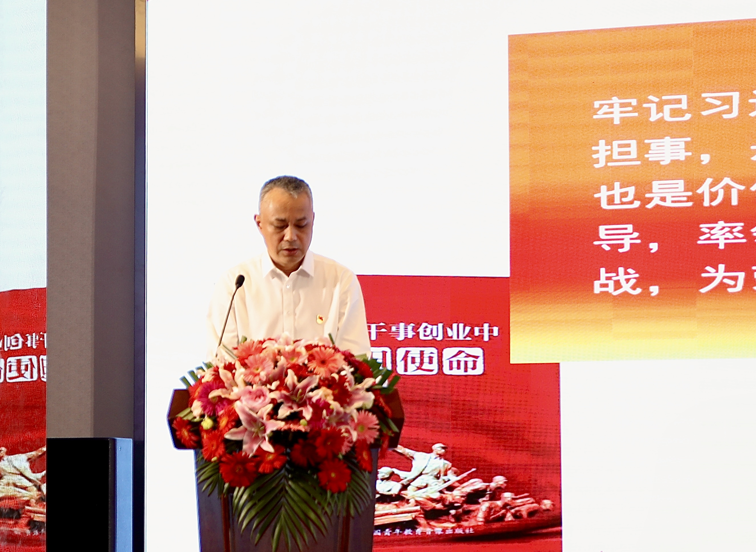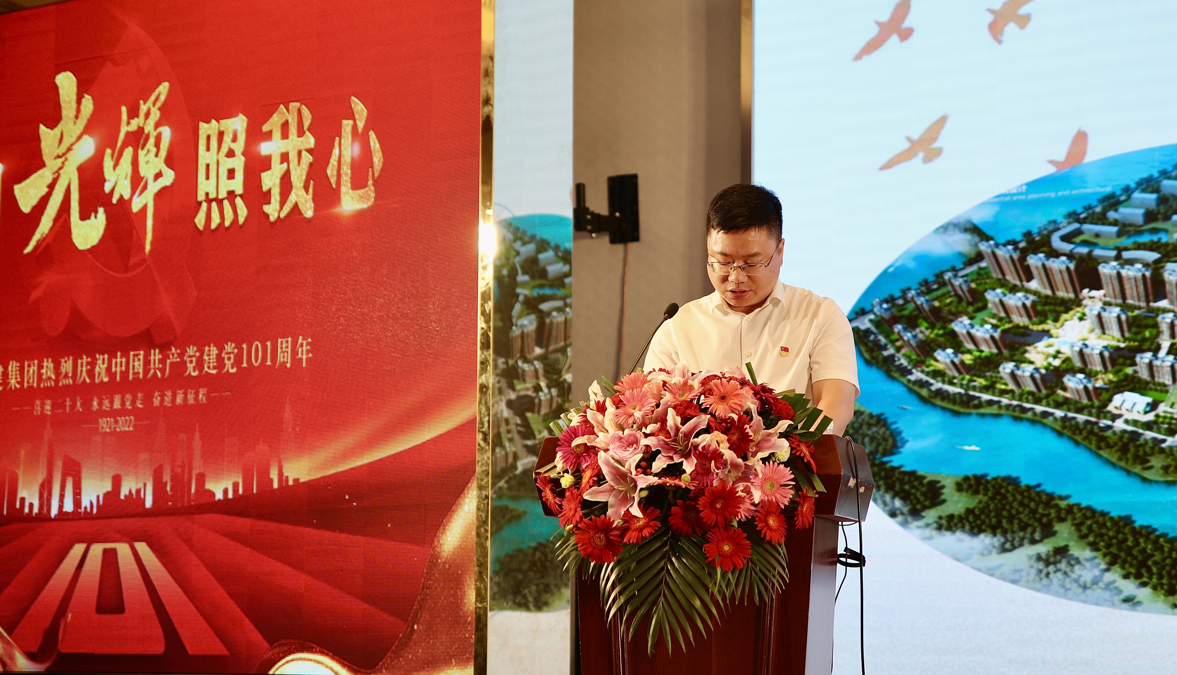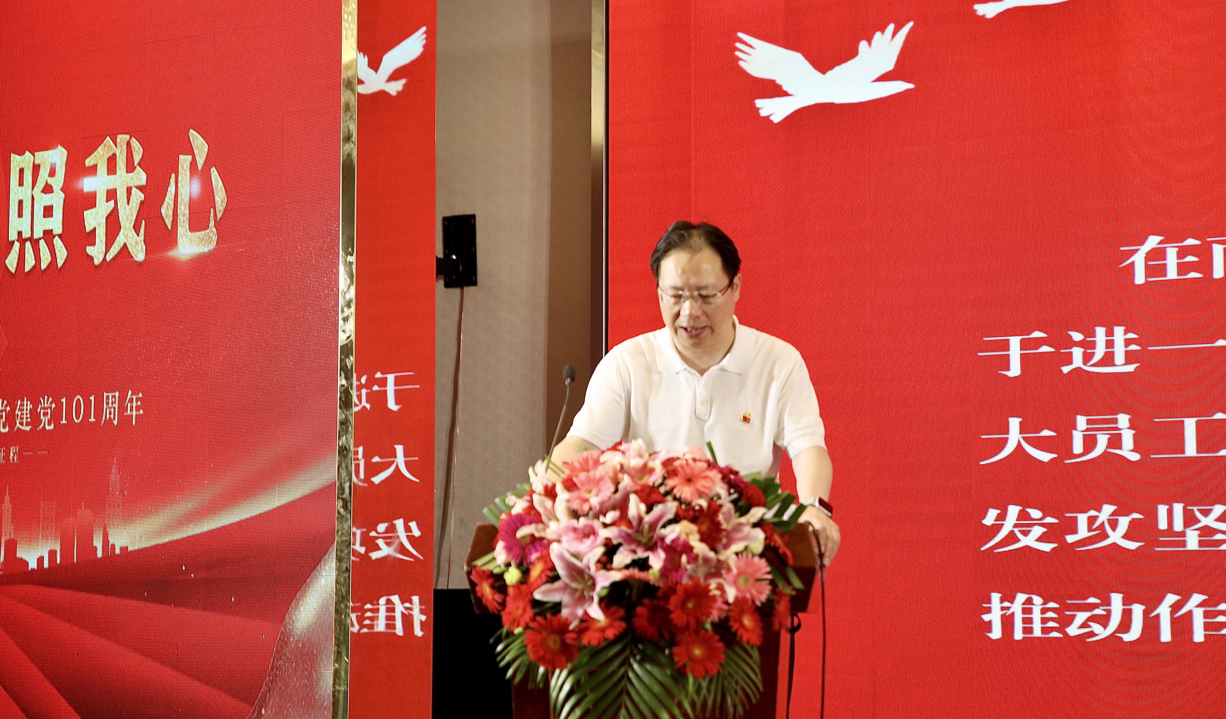 集团党委副书记、副董事长、总裁施晖首先作开场致辞。他在致辞中代表集团公司向一直坚守三建、辛劳付出的广大员工表示衷心的感谢并致以崇高的敬意。他在致辞中说,在企业发展的关键时期,面对前所未有的困难和挑战,我们更需要坚强的党建引领和强大的信念支撑,通过强化党对企业的领导,深化民营企业的红色基因,更好地发挥党支部战斗堡垒和党员先锋模范作用,为集团爬坡过坎、攻坚克难提供强大思想保障和精神动力。集团全体党员和员工,不仅要在本次“党的光辉照我心”主题活动中有所收获,更要在日常工作与生活中持续推动学习习近平新时代中国特色社会主义思想走深走实,深化党的创新理论武装,巩固拓展党史学习教育成果,传承红色基因,赓续红色血脉。在党的旗帜引领下,坚守党的初心使命,坚强党的组织建设,在铁军精神的感召鼓舞下,敢打必胜、顽强拼搏,甩开膀子加油干,坚定蓄力再出发,助力南通三建奋力前行、开创新局。