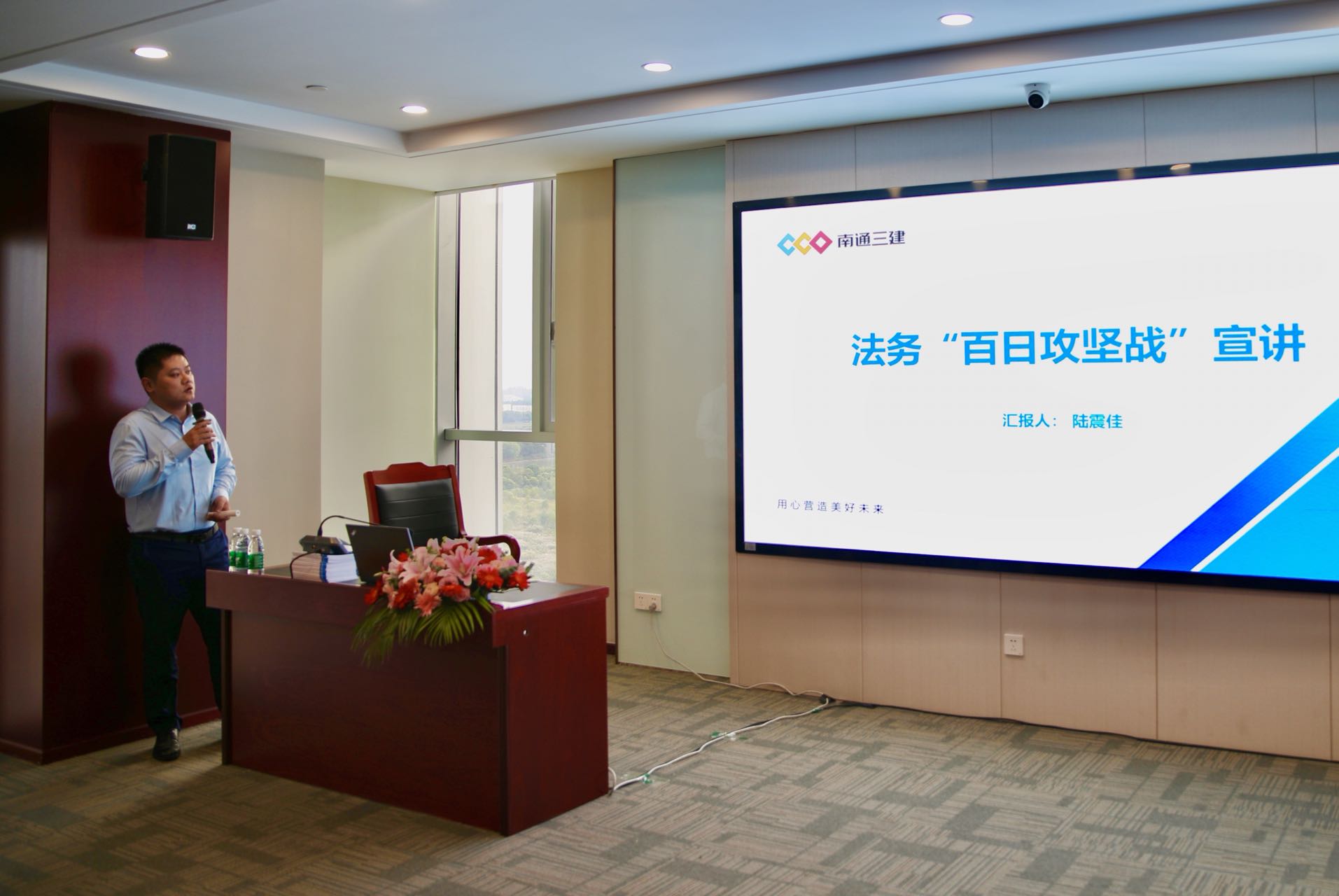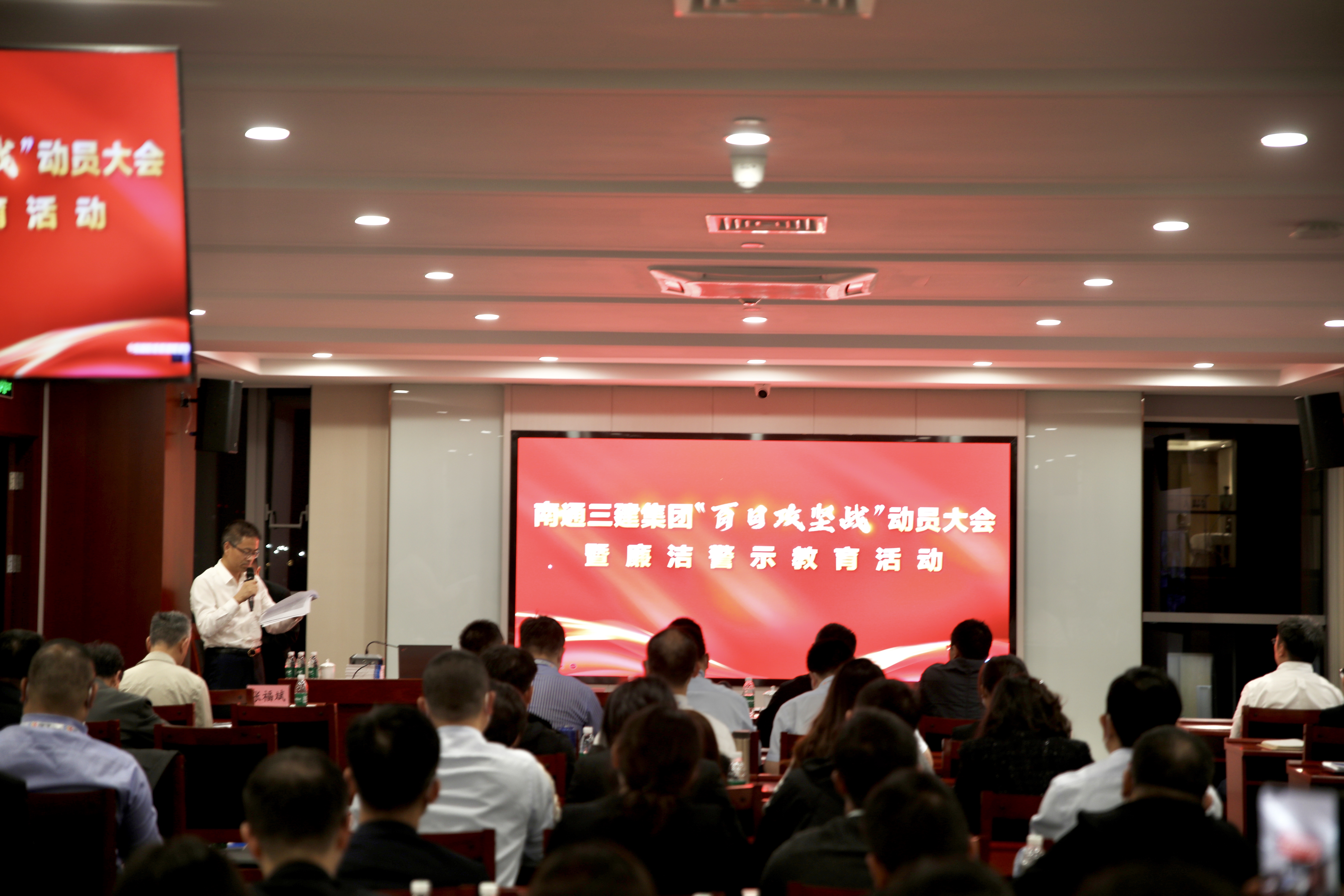 10月9日下午,集团“百日攻坚战”动员大会暨廉洁警示教育活动在南通三建总部举行。该活动旨在切实贯彻集团年中工作会议精神,迎难而上,开创新局,坚决夺取关键之年决定性胜利,同时,深入开展廉政教育活动,从严从紧从实抓好集团党员队伍和员工团队的建设,营造纪律严明、清风正气的企业氛围。海门区纪委常委朱华、区公安局经侦大队副大队长范勋亲临现场授课。集团董事长黄裕辉,副董事长、总裁施晖,副董事长周炳高等高管及集团全体员工近千人通过现场或视频会议形式参加活动。