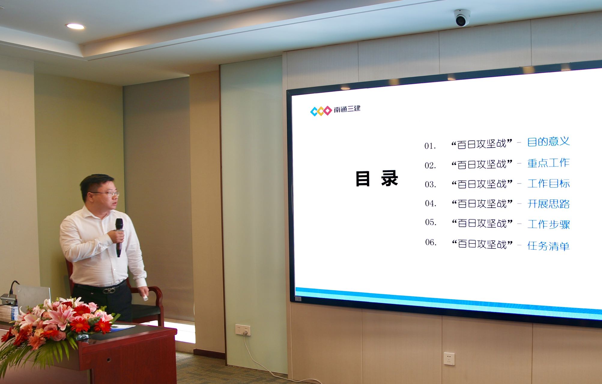 黄裕辉董事长作了题为“奋进新时代 建功新三建”的主题讲话,阐述了处于特殊时期三建“活下去”“挺得住”“强起来”的奋斗历程和前行之路,分析了当前的经济形势和集团工作任务,明确了“百日攻坚战”的“2231”战术,为当前集团工作确定了方向,同时就集团党风廉政建设提出了要求。他指出,在公司变革转型的关键时期,应对挑战的关键之年,希望全体员工自信从容向未来,自强创新不辱使命,以强烈的使命意识和担当精神,坚定必胜信念,强势攻坚克难,努力实现集团涅槃重生,以实际行动迎接党的二十大胜利召开,为全面建设社会主义现代化国家、全面推进中华民族伟大复兴作出新的更大的贡献!