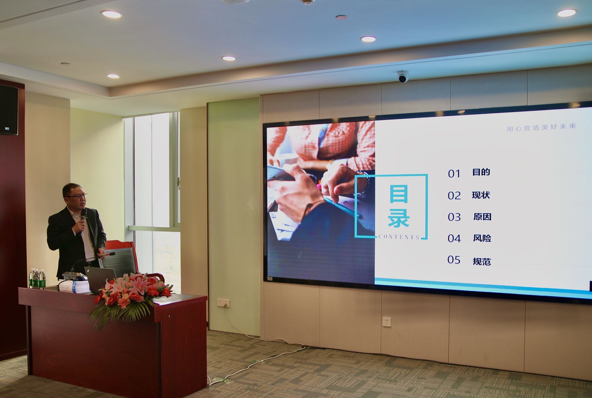 集团执行总裁张福斌主持会议。集团副总裁邢挺、董事长助理顾冲、总裁助理毛爱晶、法务总监陆震佳先后就综合管理、财务支付、经营预算、风控诉讼等方面对集团全体员工进行了培训。